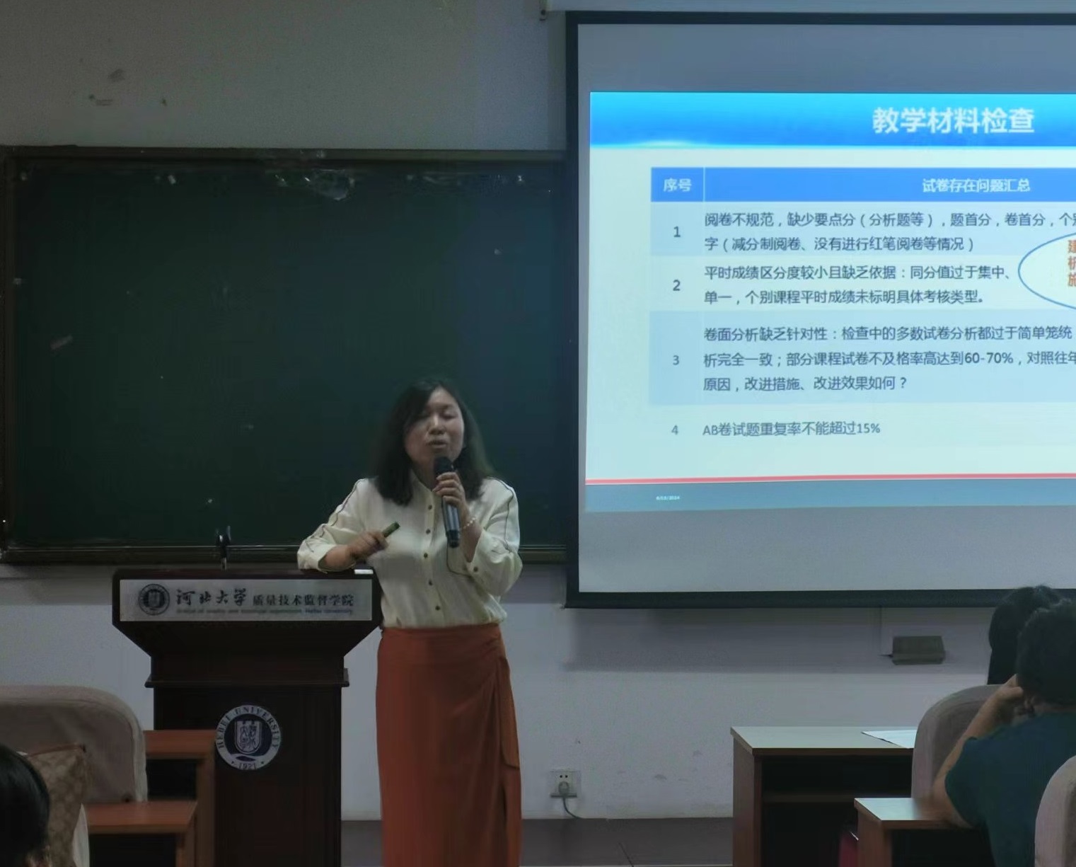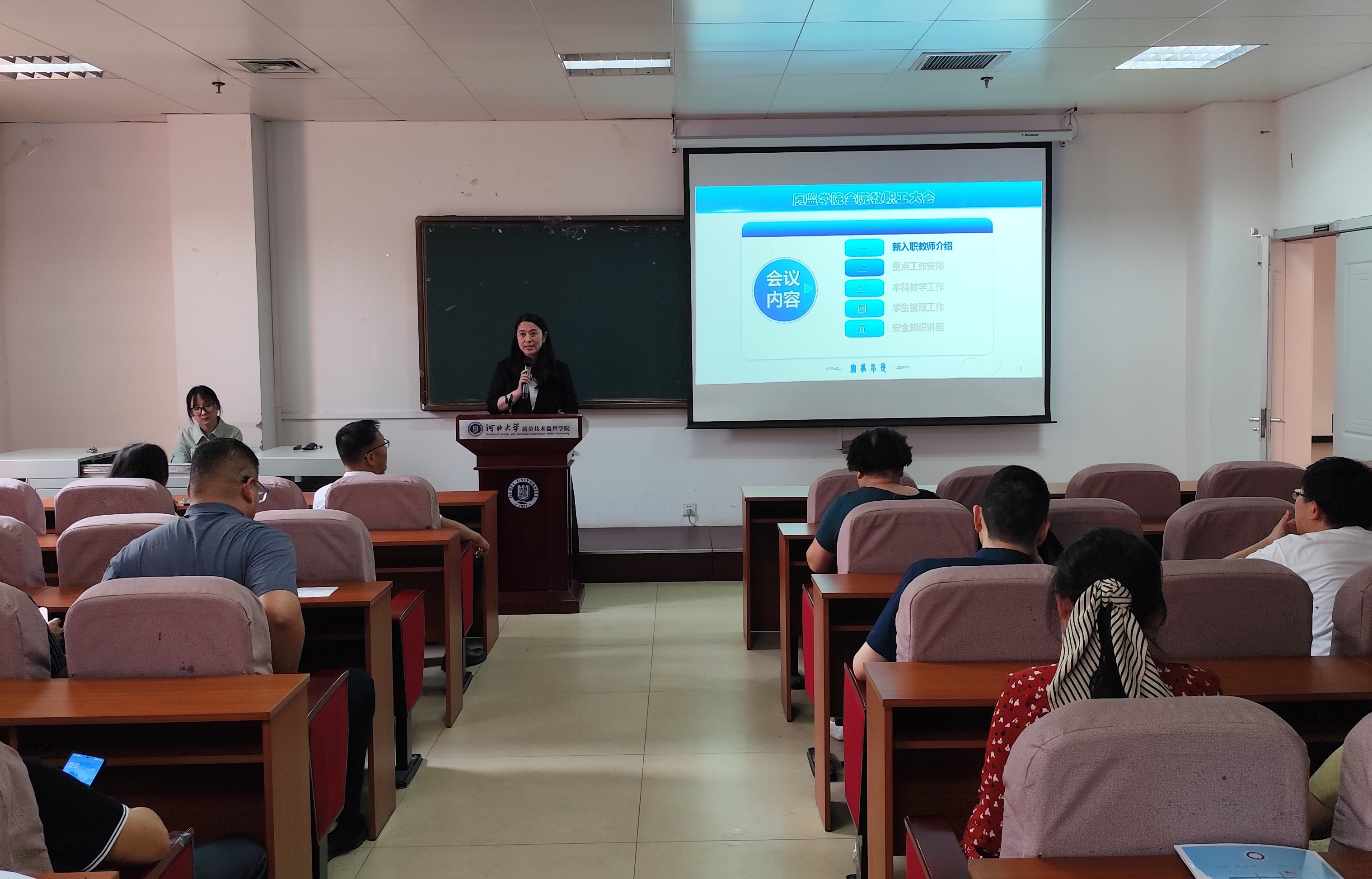 院党委书记哈艳针对学院本科教育教学审核评估工作提出三点要求:一是要提高认识,全院要高度重视审核评估工作,这关系到学院发展和师生切身利益;二是要做好落实,根据学校学院评估工作安排,确保迎评工作落实到位;三是要强化协同,各系、科室、中心确保有效衔接,按要求高质量推进审核评估工作。