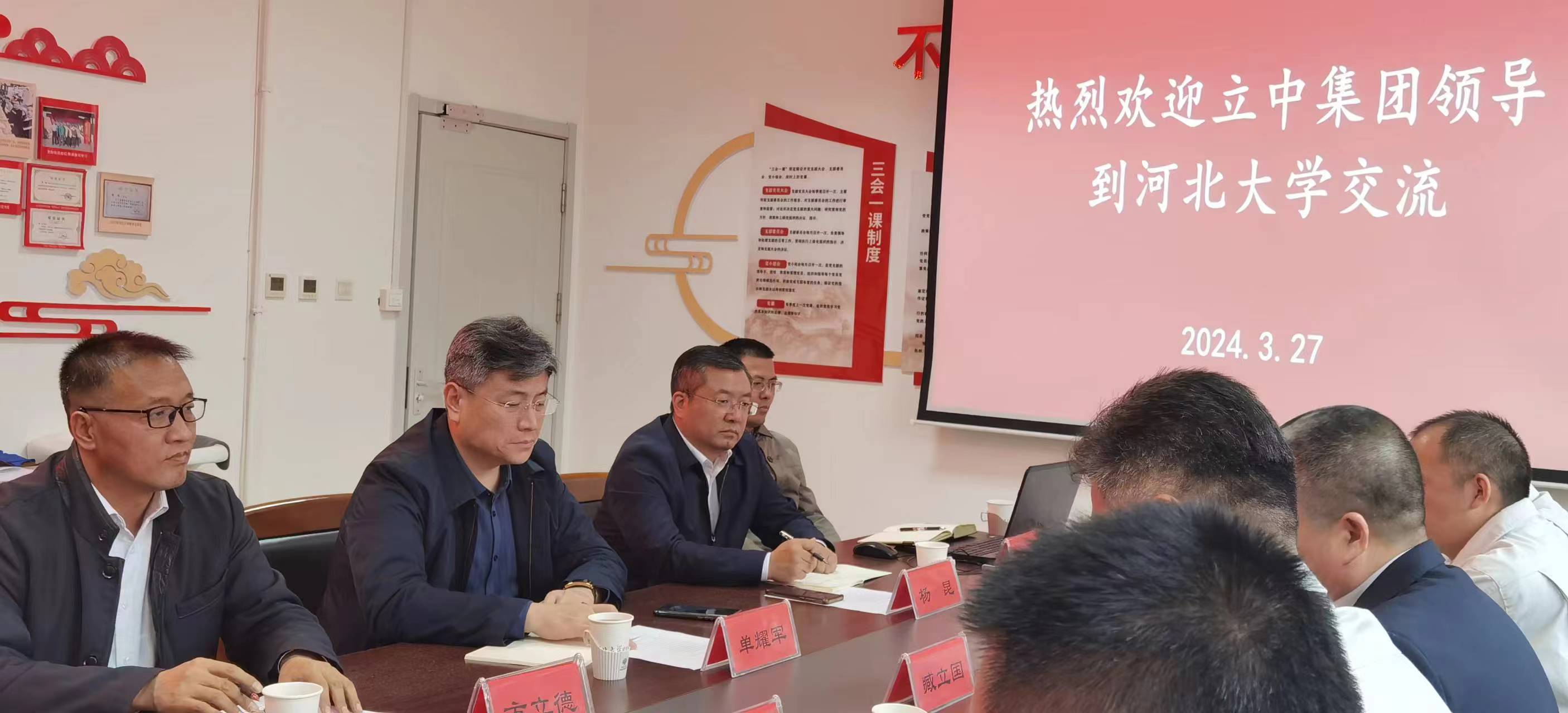 327日下午14:30,立中集团董事会副主席臧立国、质量中心副总监何更雷、实验中心总工程师王利、熔铸技术研究所所长周亚伟、综合管理部部长徐连弟、综合管理部主任信海源一行6人来我院交流。会议在七一路校区C4-204召开,河北大学党委常委、副校长单耀军教授、河北大学发展规划处处长杨昆教授、学院领导班子成员及相关教师参加了会议,会议由方立德院长主持。