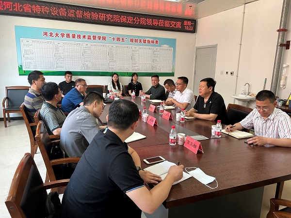 为深入贯彻党的二十大报告中关于加强产学研深度融合,强化目标导向,提高科技成果转化和产业化水平等相关精神,5月15日下午3:00,河北省特种设备监督检验研究院保定分院张景水院长一行应邀来我院交流,就党建共建、人才培养、科研合作、社会服务等方面进行了研讨,交流会在七一路校区C4-205召开。学院党委书记郝真鸣、院长方立德、副院长周伟以及学院部分教师参加了会议。