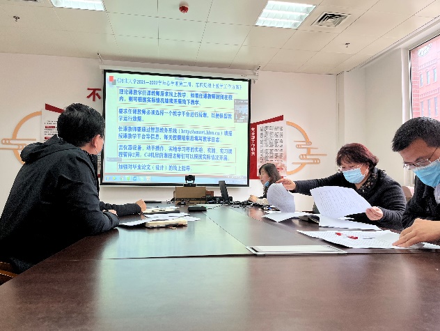 1.学院召开全院教师线上会议,详细说明了闭环管理期间线上教学方案,梳理了线上教学中遇到的问题并给出解决方案。同时组织任课教师参加教学平台使用培训,指导教师通过智慧教务系统不断完善课程信息、确认直播授课平台,督促课后填写教学日志反馈教学情况。