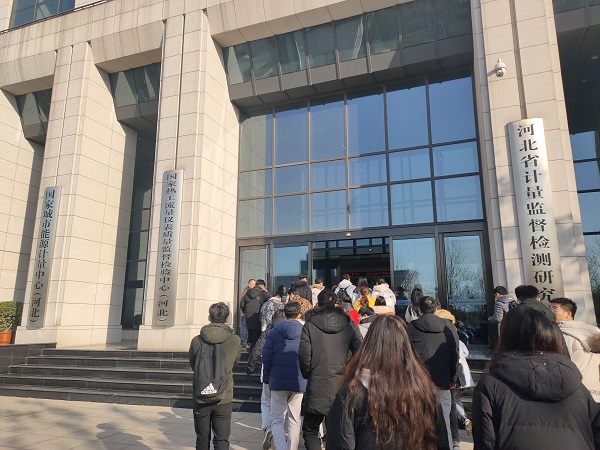 当天下午,师生们参观了河北省计量监督检测研究院。首先来到了河北计量文化展厅,了解计量发展历史和文化,熟悉和了解各个历史时期计量仪器、计量单位的演变和发展,深切感触到计量文化的博大精深和计量价值的核心体现。之后在讲解人员的带领下实地参观了长度、压力、电磁辐射、力学、气体流量、电学和水流量等专业实验室。在实验室见到了我校校友邢寒雪、郭辉和陈素等人,在与校友和实验室科研人员进行了深入交流,同学们对于所学专业知识有了更为深刻的理解。