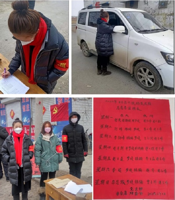 赵赫楠2019级测控技术与仪器专业学生,身为一名共青团员她自愿投身疫情防控一线,在家乡河北省辛集市位伯镇小白店村村口登记来往车辆,阻止外来人员进村并及时转发疫情实时动态和与疫情相关的报道,让村民们对疫情有更全面的认识并加强大家的防范意识,帮助大家做好自我防护,争取早日打赢这场战“疫”。