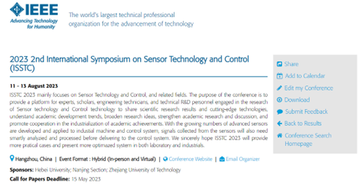 第二届IEEE传感器技术与控制国际研讨会(ISSTC 2023)
