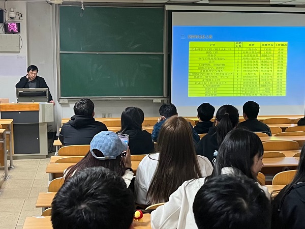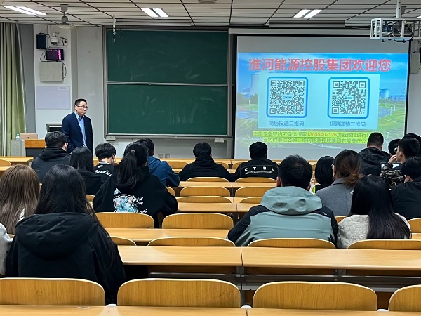 为了促进我校毕业生更好了解如今社会就业形势,同时也为企业后续发展做好人力资源储备,淮河能源控股集团有限责任公司于2023年03月28日晚上19:00在河北大学七一路校区A3-308教室举办2023届高校毕业生校园招聘宣讲会。本次会议由淮河能源控股集团有限责任公司主管徐海主持,我校多专业毕业生积极参与。